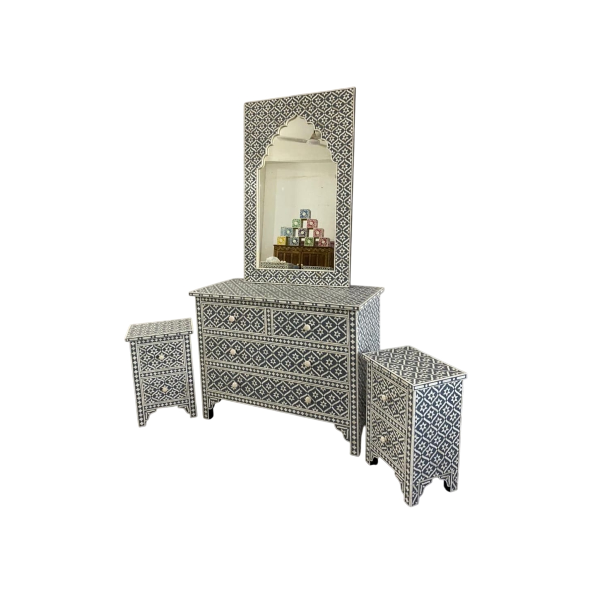 Charcoal Grey Geometric Bone Inlay Dressing Set