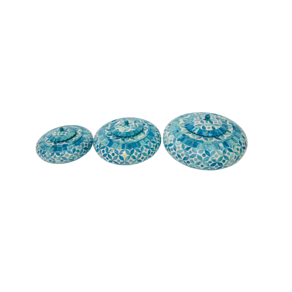 Nesting Set of Three Round Mosaic Inlay Tachariya (Ocean Blue)