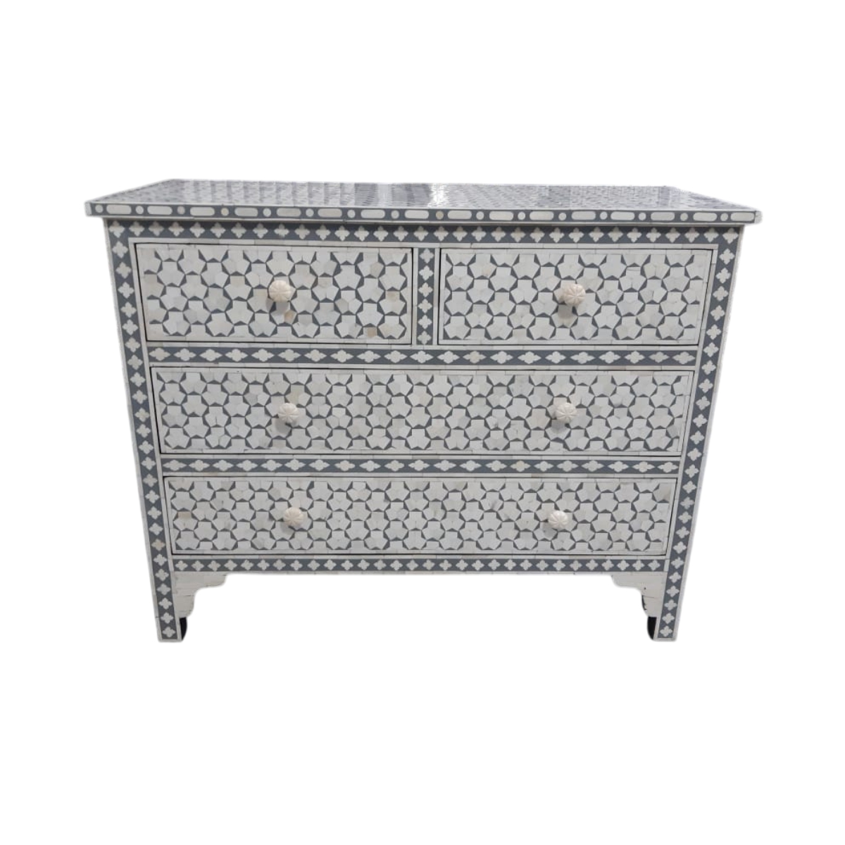 Ivory and Grey Star Geometric Bone Inlay Commode
