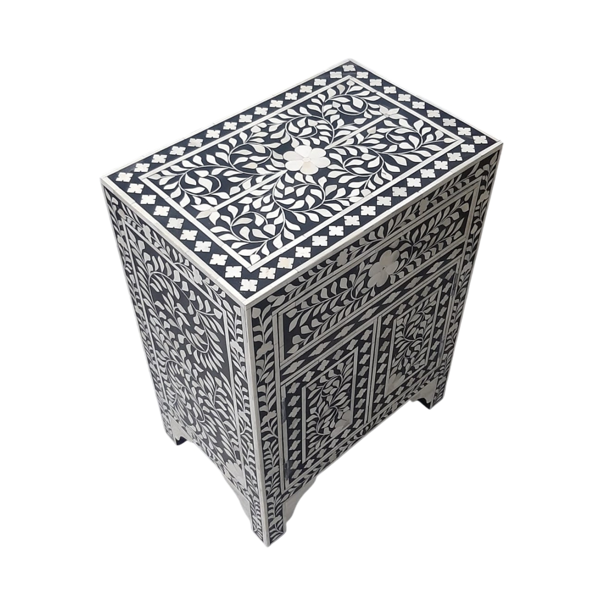 Exquisite Black & White Bone Inlay night lamp stand with Floral & Vine Motif