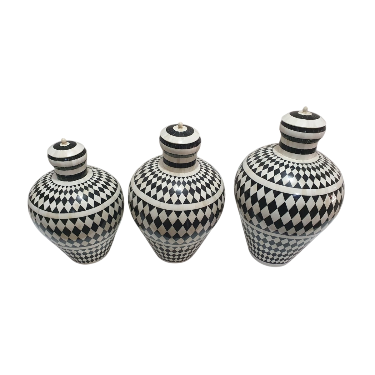 Black and White Bone Inlay Geometric Diamond Vase