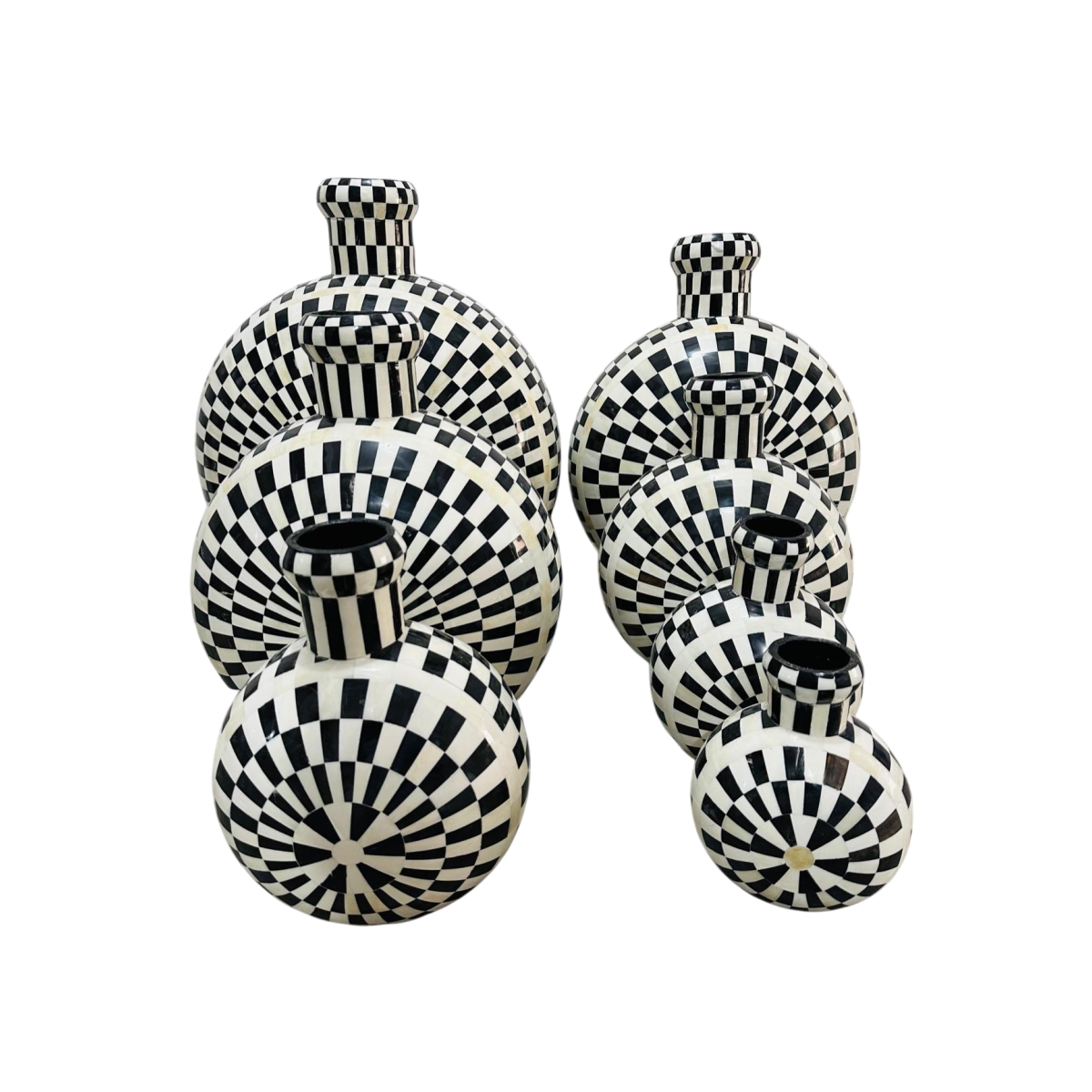 Checkerboard Bone Inlay Flask-Shaped Decorative Vessel