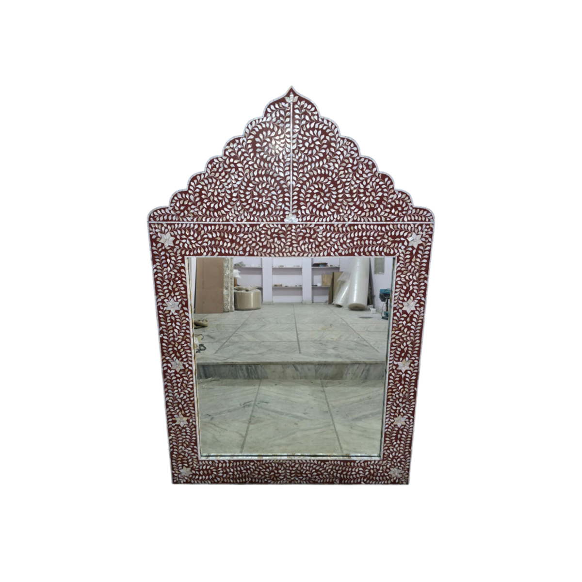 Regal Moghul Arch Bone Inlay Mirror in Deep Red