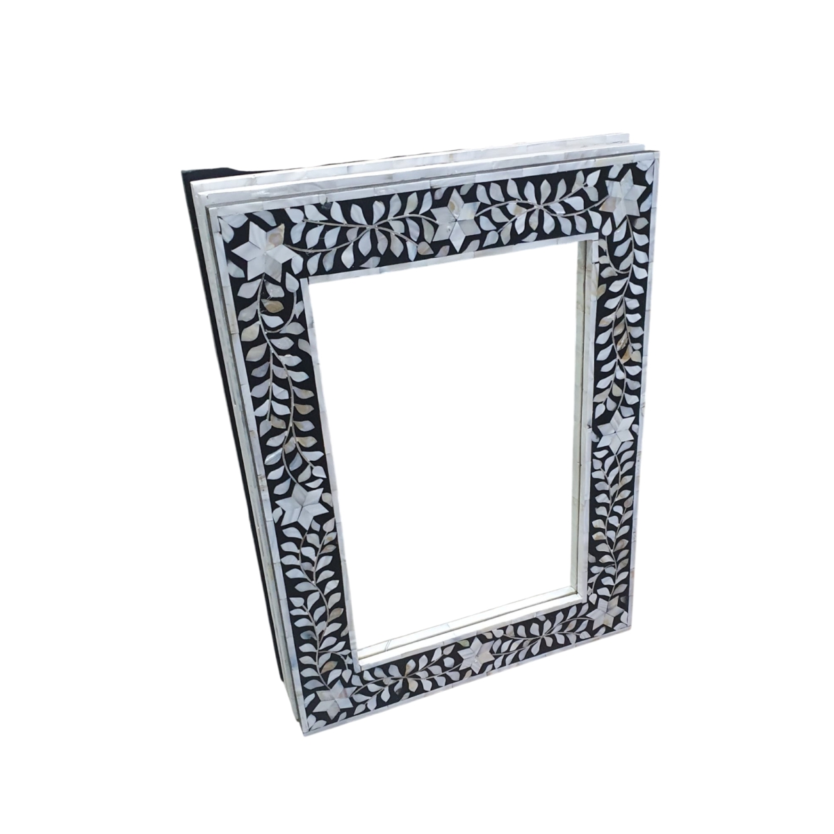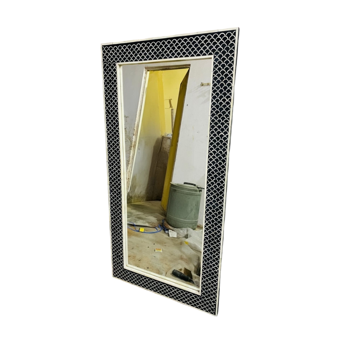 Black Scallop Pattern Bone Inlay Rectangular Mirror