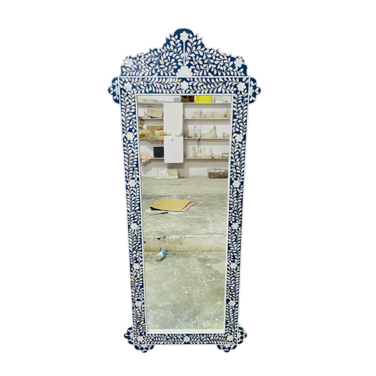 Deep Indigo Floral Inlay Full-Length Mirror with Pedestal