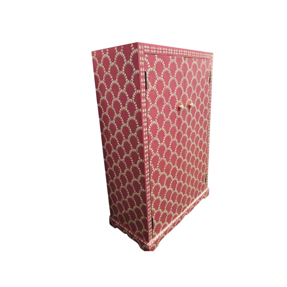 A vibrant and exceptionally colorful piece, this tall wardrobe or armoire is a dazzling statement of maximalist design. It features an eye-catching two-tone pink and white color palette, ranging from a deep coral to a soft blush.